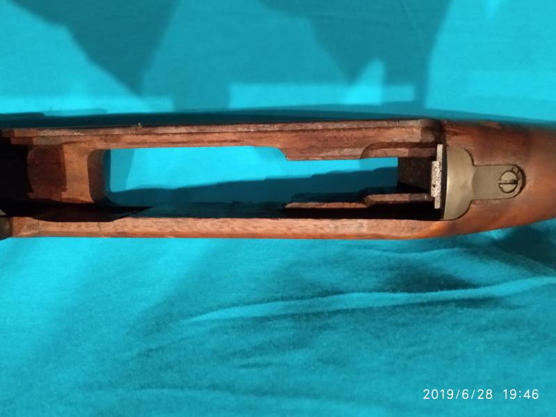 - 1) Madera con sellos arsenal ROCKOLA e inspector de armamento y cubrecañón. Con los herrajes de las fotos e incluyo porta-bayonetas época posterior. aparentemente nueva, con alguna rozadura de almacenamiento (ver foto) 180 euros + portes. Preferible entrega en mano (Madrid).