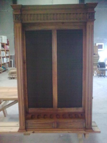 Mueble armero realizado en madera maciza barnizado a mano en color nogal