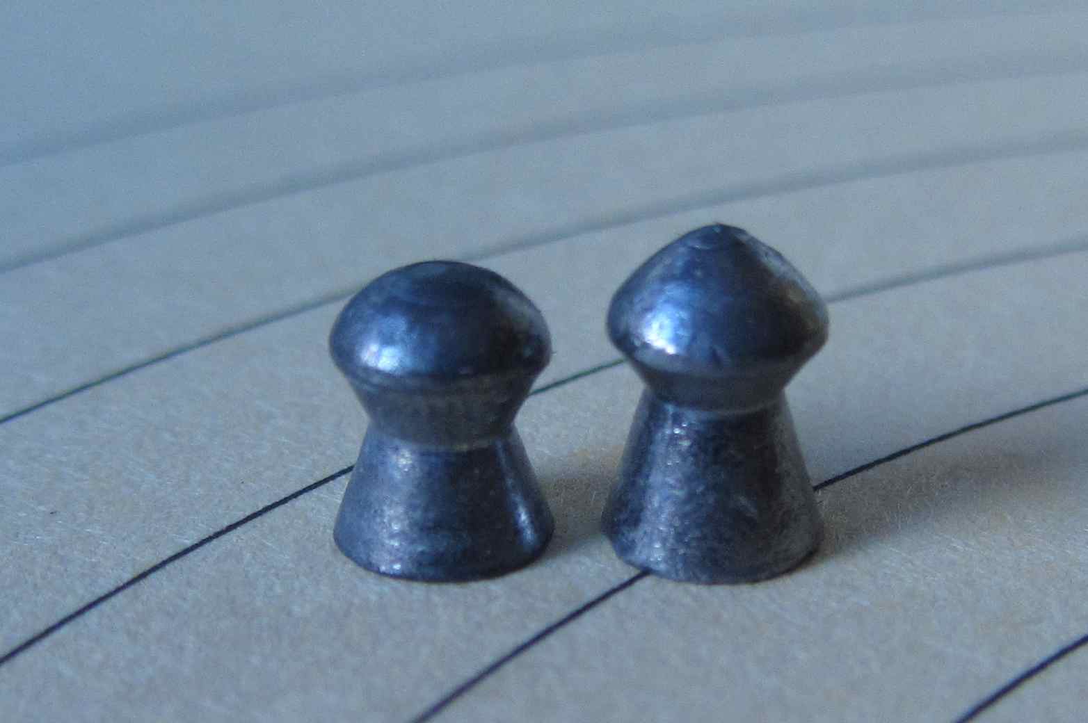 Como al alimentar en la rampa la cabeza, donde tiene casi toda la masa, pesa más que la cola del balín, cabecea un poco y entra un pelín torcido (pasa igual con la mía en 5.5) y al ser un poco más largo...lo que pasa es que al usar balines de menos masa y plomo más blando (Express y RS) no hay tanto problema.