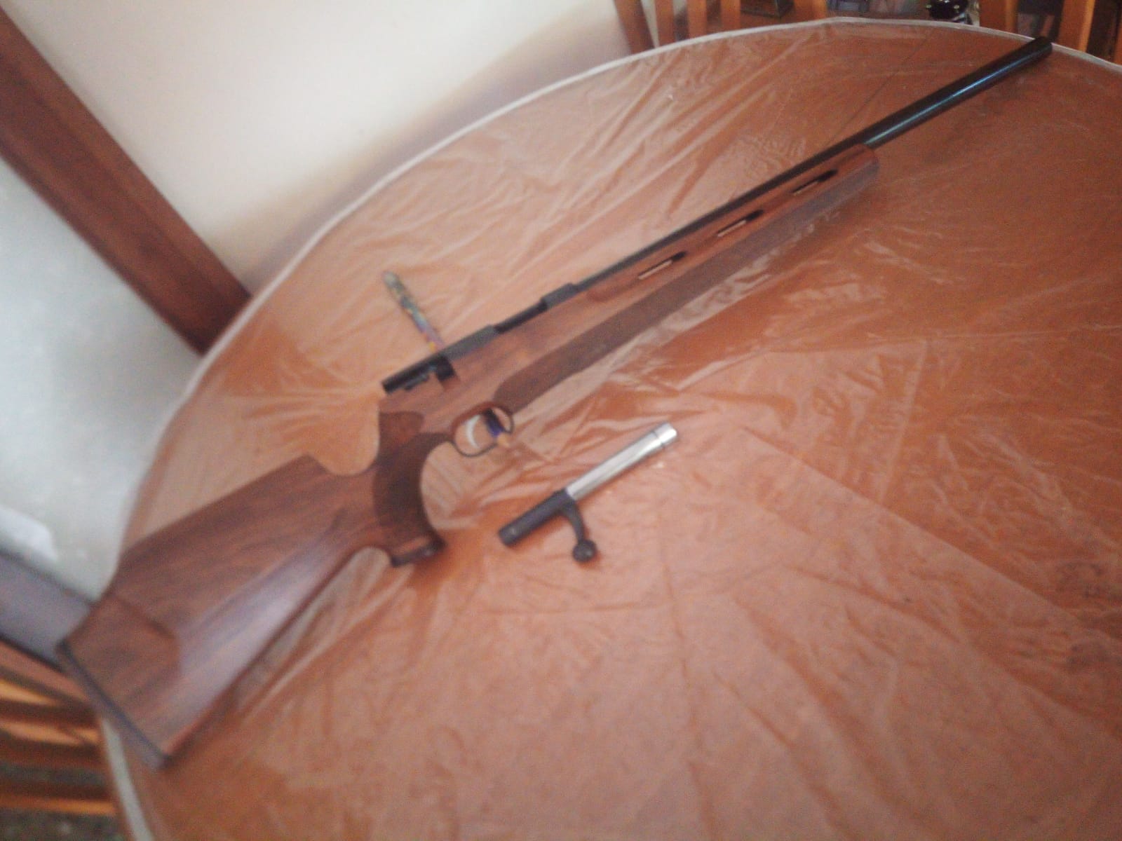 La primera es una WEIHRAUCH HW66, calibre 22, esta está a estrenar. Tiene culata de zurdo