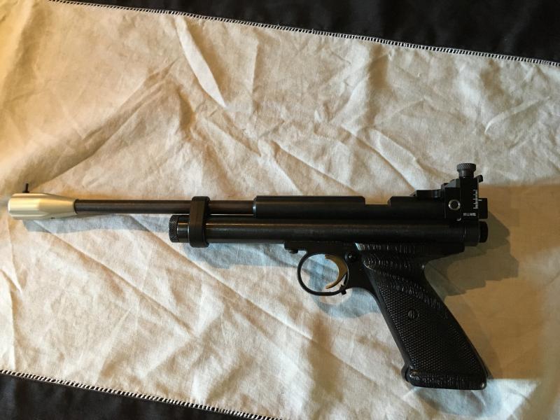 -Crosman 2300 (4,5)con culatin, punto rojo , adaptador y moderador de sonido. Se adjuntan cachas originales de pistola.