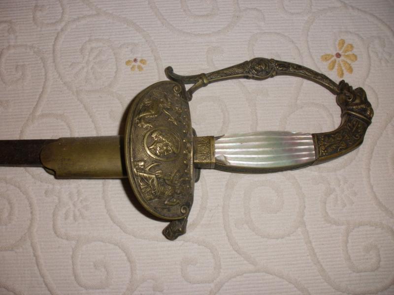 Bueno, pero por lo poco que se ve, parece un espadín para oficial de la Marina, de ahí el motivo de la musa que sostiene el ancla (a la derecha). No obstante, como no acabo de ver motivos militares, tanto puede ser de un oficial de la Armada, como de un capitán de la marina mercante, para traje de gala.