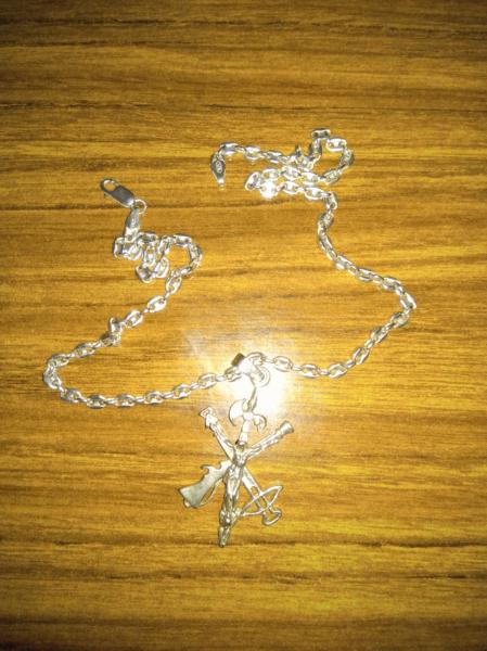 Vendo Cruz del Cristo de la Legión, tamaño grande (5x3), con cadena (46cm), en plata de ley.