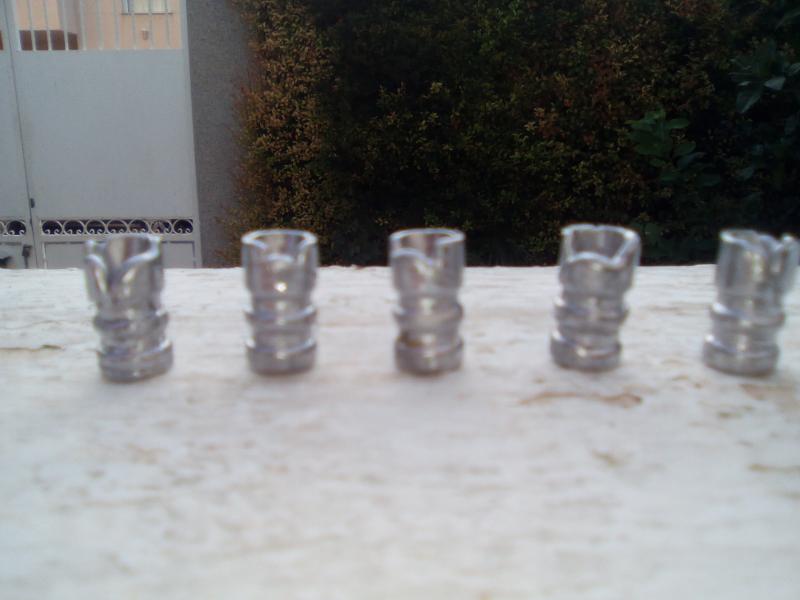 Muy buenas tardes, adjunto unas fotos como ejemplo del resultado de esta esta tarde. Como creo que se aprecia en las fotos, el plomo no ha terminado de llenar el molde, resultado los proyectiles totalmente desechables.