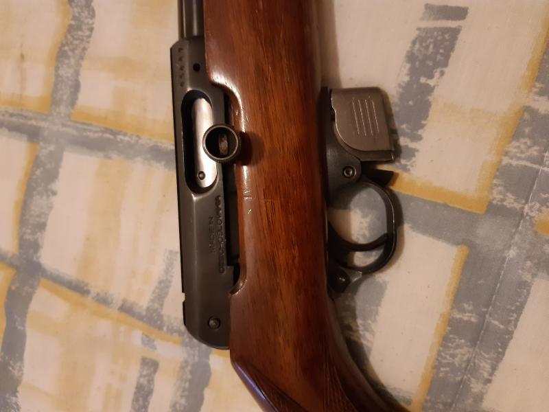 Carabina 22 lr semiautomatica BRNO, md. 581. Cargador de 8 cartuchos. Arma de calidad. Muy buen estado general. Ligera y manejable (97 cm), cañon 56 cm.