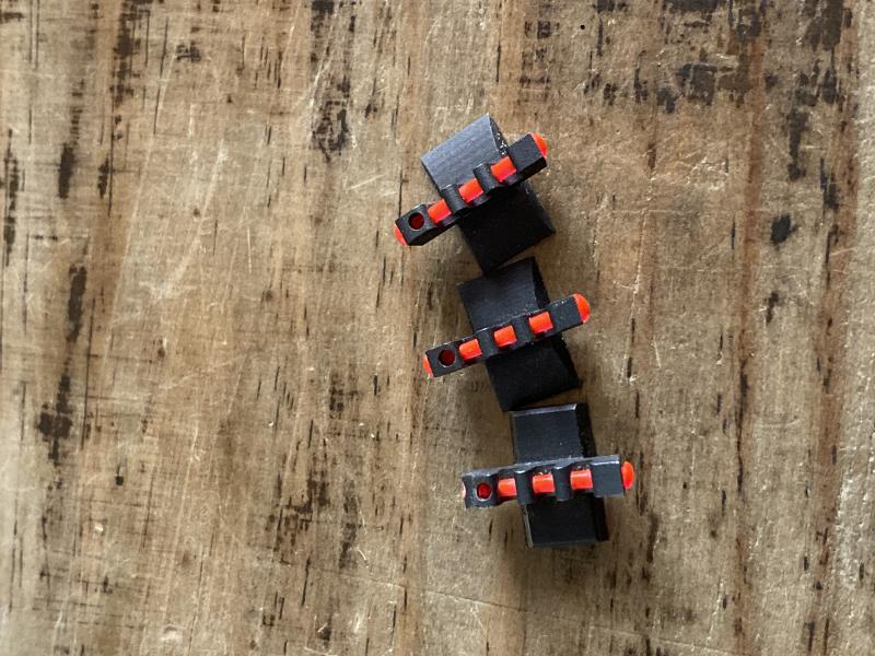 Puntos de mira de fibra rojos , de 8,4 mm de cola de milano . Hay dos anchuras .170” y.190”