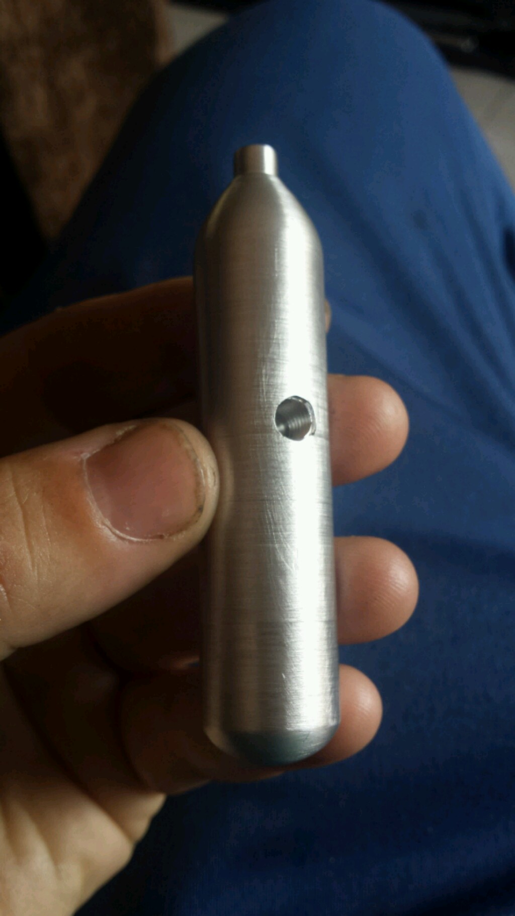 Bueno pues a petición de un amigo le fabrique en aluminio macizo con la forma de una botellita de co2 02