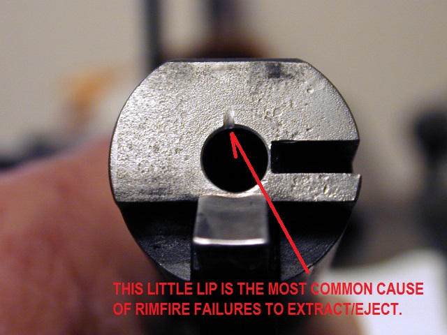 El plano de la recamara del cañón, justo donde donde golpea la percutora, no esta deformado de pegar muchos tiros en seco, y a salido una pequeña rebaba que roza contra el cartucho, e impide que este entre con facilidad???? Es un problema muy corriente en las armas del 22 LR, por tirar en seco, y que se soluciona con una lima redonda y cuidado, para dejar de nuevo cilíndrica la entrada de la recamara.............