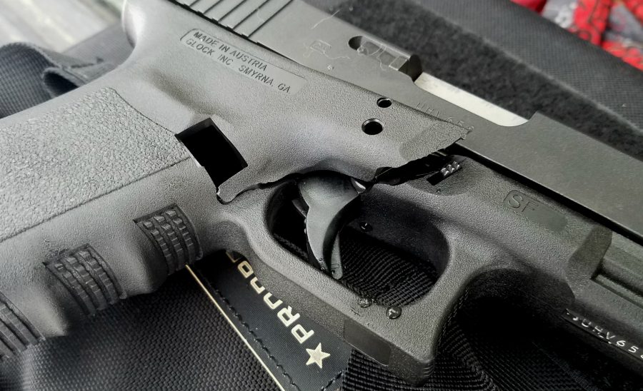 Nunca he visto un Glock fallar así, incluidas nuestras pistolas de entrenamiento de la Policía en Inglaterra que disparan miles de disparos al año. Pero las pistolas Policiales no tienen este tipo de compensador.
