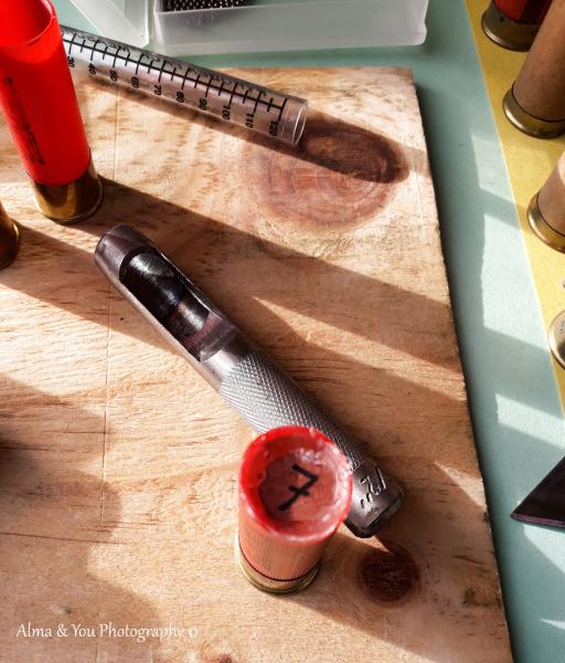 El caso es que me lie a recargar cartuchos con la negra, para darle un toque avancarguero al dia, lo cual me hizo revolver entre todo el material y algo añejo salio del fondo del camarote, los cartuchos los recargue con 60 FFF y 30 grm. de plomo para el derecho y 35 para el izq. aunque este no llegue a utilizar, ya que las dos piezas calleron al primer tiro.