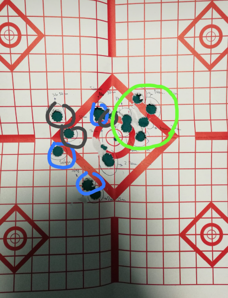 Eder escribió:Hace un par de semanas estuve poniendo a tiro el visor de la escopeta y haciendo pruebas con diferentes balas a 50m. La escopeta es una winchester sxp con cañón cilíndrico de 51cm y el visor un punto rojo Holosun. Los disparos fueron hechos apoyado. Los impactos azules son con las balas solognac, los negros de las JG de 39g y los verdes de las Remington slugger normales, hay más impactos pero son de otras pruebas. A falta de probarlas en acción de caza, me quedo con las Remington. Saludos!