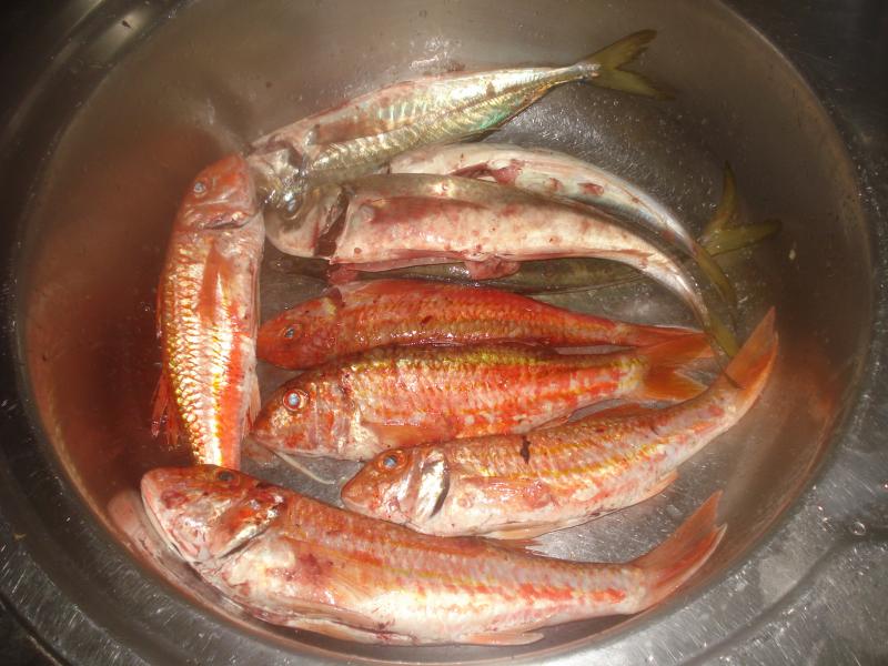 Ahora los salmonetes banzai de ayer, omega 3 a tope, recien pescados y eviscerados.