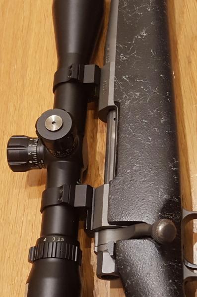 Pocos tiros pero bastantes horas de monte tras los rebecos, por ello en su lado izquierdo tiene más desgaste la culata sintética, por roce en su transporte. Su anterior propietario lo tenía puesto a tiro con munición original Federal. Yo he probado con él unas puntas Hornady y he tirado menos de 10 tiros. Varios para ponerlo y después tiré tres veces y fueron tres impactos claramente SUBMOA. Probando con diferentes municiones comerciales o recargando es evidente que tirará de maravilla, lo que es un valor si se añade su contenido peso, inferior a 3 kg