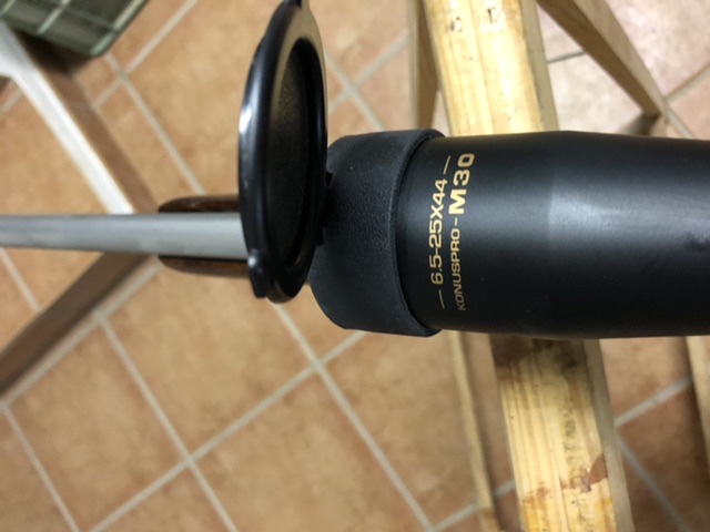 El visor es un Konuspro M30, 6.5x25x44. Retícula mildot iluminada en azul o rojo y burbuja interior para nivelación,
