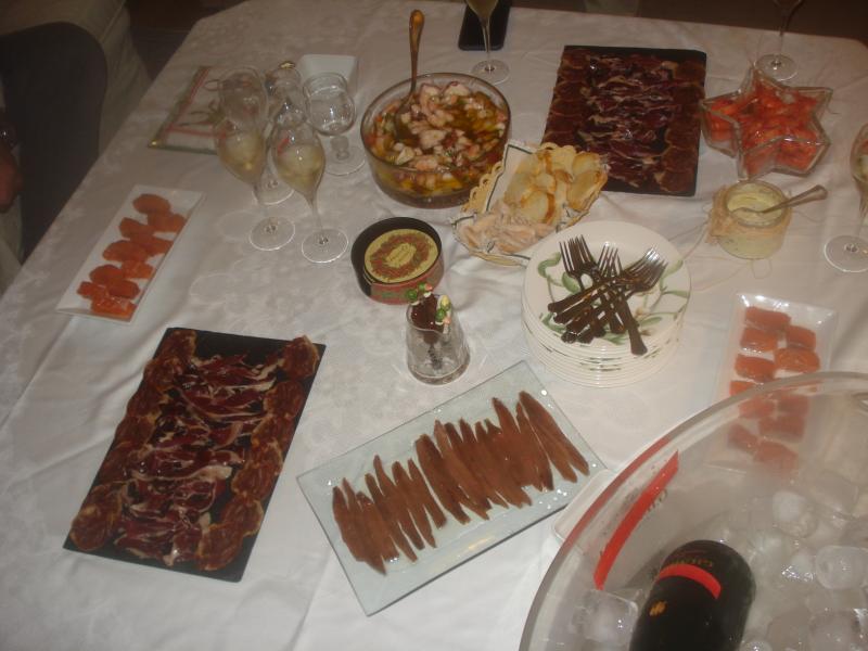 Para comenzar con unas fruslerías variadas, foie gras de pato mudo, salmón ahumado de la casa Dominguez, filetes de anchoas de San Filippo y salpicón de marisco.