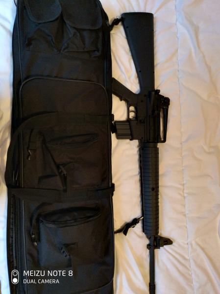 Carabina potente y cortita, réplica del M16 con sus mismos elementos de puntería, gran calidad. Sorprendente precisión una vez afinado su gatillo con un tornillo de regulación más largo, otros tornillos principales de la culata han sido sustituidos por otros de mayor dureza e inoxidables. Se entrega en su caja original y los tornillos de serie, la correa portafusil también está incluida. La funda que la acompaña tiene diferentes compartimentos para guardar munición o blancos y algún trapo para limpiar después de tirar, posee cintas de ajuste y para llevarla como mochila además de tener la posibilidad de albergar carabinas más largas debido a que es extensible.