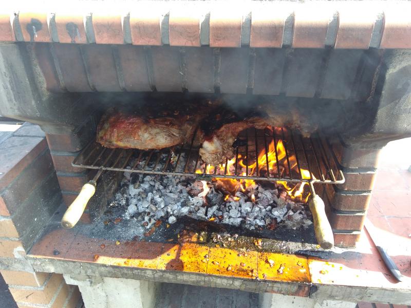 Y si te pegas mucho rato asando, mínimo 4 horas y de allí para arriba según lo grandes que sean las piezas. Una costilla de cerdo la tienes en 4 horas y una de vaca en 6 o 7. Vamos que si quieres tenerla para la hora de comer a punto mañana ya tienes que estar en acción. Pero el resultado es muy bueno y es divertido de aprender y hacer.