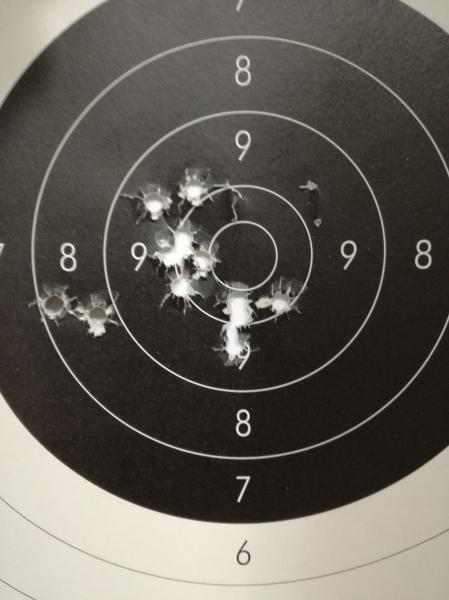 He empezado bajo con buena agrupación y he subido el alza y "voila" han empezado a caer dieces y yo a emocionarme pensando que ya lo tenía hecho