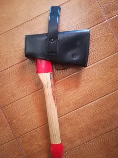 Vendo hacha datada en funda de 1959. En perfecto estado. Funda para porte en cuero con refuerzo de metal para proteger del filo.