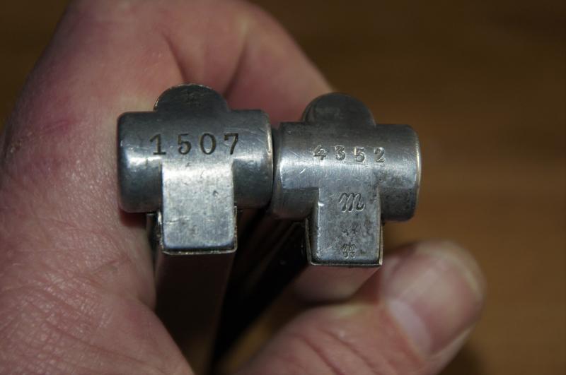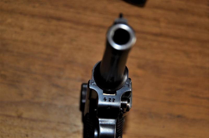 A falta de ver más fotos como puedan ser el armazón y corredera vistos desde dentro, el acabado rust blue parece original si nos atenemos, especialmente, a los halos que presentan los números del cañón, si bien está repunzonada. Las piezas menores serían en amarillo paja, aunque este acabado dorado se nota gastado en general. Los cargadores corresponderían a Mauser, pero de época inmediatamente anterior al ser niquelados -1936 previsiblemente, por el que mantiene marcaje original y no está remarcado de los dos (Los correctos para esta época serían de talón de aluminio también, pero el tubo pavonado azul). Dicho esto, es una bonita pieza y te deseo mucha suerte en la compra. Casualidades de la vida, tengo una Luger con el mismo número y, quizá, mismo sufijo también, pero de otro año !!. Si fuera g, sería el mismo!! (No lo aprecio bien).