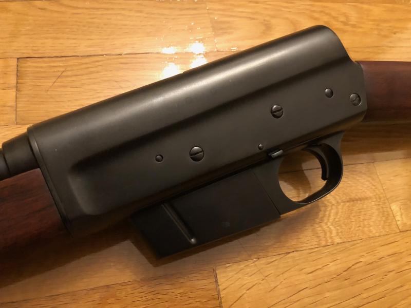 Comparto con vosotros unas fotos de mi ultima restauración. Se trata de emblemático Modelo 8 diseñado, como no, por nuestro querido John Moses Browning en el año 1900. Como seguramente sabéis, el rifle opera con un mecanismo de retroceso largo, exactamente igual que la Auto 5 (el cañón acompaña en todo su recorrido al cerrojo en el ciclo de disparo). Concretamente, mi rifle es una unidad del calibre 35 Remington fabricada de acuerdo al número de serie en 1917 por Remington con todas las piezas con numeración coincidente, maderas originales y cantonera metálica de fábrica.