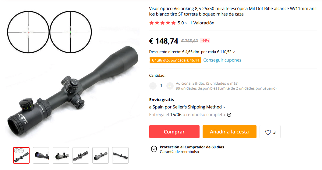 En aliexpress como en cualquier armería online hay visores para casi todos los bolsillos, desde lo más tirado y cutre a los de alta gama..uno de gama media como los que hemos sugerido para tiro recreativo cumple y la relación calidad-precio es adecuada. luego hay visores como los Discovery HD, que tienen una calidad óptica y de materiales superior, doblando los precios y más aún...