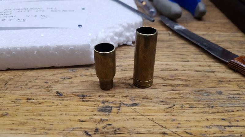 Haciendo embudos de alimentacion, con casquillos del 300 win mag. Cortados con un cortatubos de fontaneria.