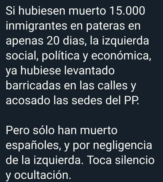 Lamentablemente los muertos no harán perder ningún diputado al gobierno, o no muchos, han conseguido su objetivo principal en lo que llevamos de crisis, que los muertos sean solo una estadística ... entre sálvames, aplausos y demás maquillajes disney de la situación ...
