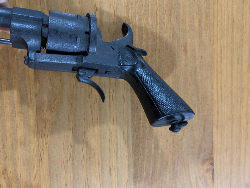 Es un Revólver Lefaucheux, seguramente alguna copia eibarresa, si tuviera algún marcaje te podríamos ayudar más