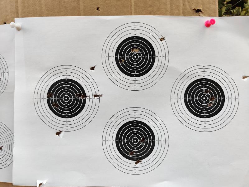 Como referencia se suele poner una moneda, pero hay un par de dianas bastante buenas con impactos muy cerca unos de otros...solo es cuestión de práctica y que la carabina vaya haciendo el rodaje (ya lo has notado con el bulón del cierre)