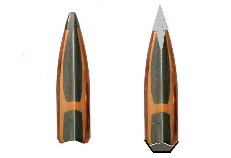 En estos cortes del proyectil se puede apreciar esas diferencias.