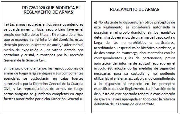 Después de una segunda lectura entiendo que el primer apartado de la modificación se refiere a las armas de libro de coleccionista y creo que queda bastante claro. Cuelgo una imagen con las modificaciones comparadas con el Reglamento, en amarillo lo que queda igual, en azul lo que cambia y en verde lo que la modificación añade.
