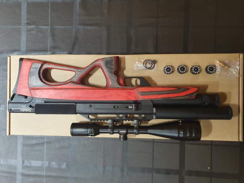 Vendo esta maravilla de Edgun, con espectacular culata laminada en rojo. La carabina se entrega en su caja, con 4 cargadores, sonda de carga, y juego de juntas original.