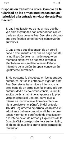 ...Maccan, En que se basan uds??? han intentado inscribir alguna? han hecho alguna transferencia? Les dejo documento donde intervienen 3 intervenciones de Armas. la 1º donde radicaba el domicilio del vendedor anterior y donde se inscriben por primera vez en libro de coleccionista al amparo del RD 976/2011 para no tener que volver a ser inutilizadas. Se emite por esa intervencion documento acreditativo de situacion legal a fecha 2018. 2ª intervencion de armas por traslado de domicilio del vendedor y ante la venta, en dicho documento se hace la diligencia de transmision intervivos acorde al RD 976/2011 a fecha julio 2020. 3ª intervencion osea la mia, diligencia en dicho documento que quedan inscritas a fecha julio 2020. Sigo estando equivocado????