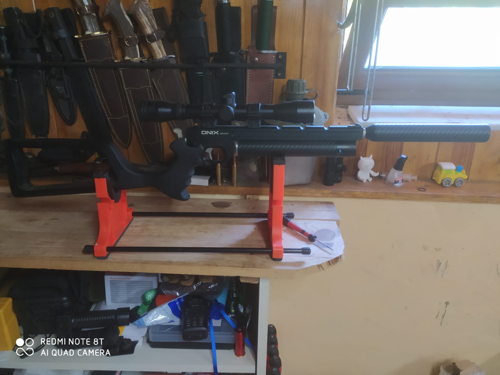 UN AMIGO VENDE pistola onix sport 4,5 con acabado carbono, silenciador, acople para el mismo en aluminio, 01
