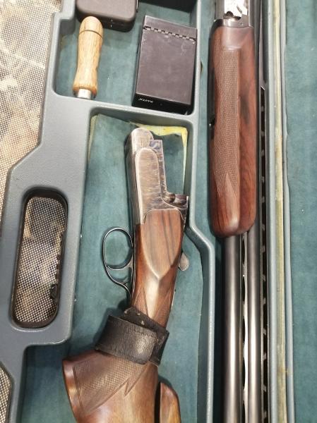 Prácticamente sin uso, como de reestreno.Inmaculada y perfecta de maderas, pavón y mecanismos.Cañon de 75cm,chokes BIRLEY.Se cambia por rifle Express, con o sin visor, en calibre no inferior al 9,3X74R,preferentemente calibre 375H&H y cuyo ESTADO y VALOR DE NUEVO, sea similar al de la escopeta . CAMBIADA SE RUEGA CERRAR.