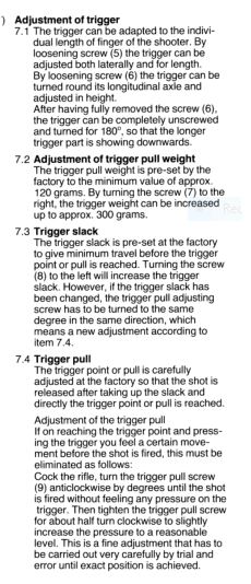 He bajado el manual de la carabina y hay un capítulo donde se habla del ajuste del gatillo.