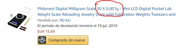 La báscula tiene que tener una precisión de 0,001 GRAMOS y poder medir grains, no vale cualquiera.