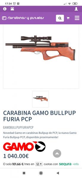 Comentar aparte que la Gamo Coyote se puede considerar gama baja-media en PCP ("lo más bajo en PCP" palabras del armero) ya que cuando salió era lo más económico que había por aquí hasta que trajeron las Initzia/PR900W.