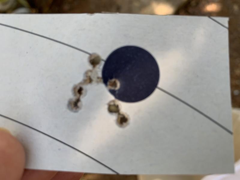 Pues a el, le va de maravilla con esta potencia, subo la diana que he comentado, hay que tener en cuenta que el parche que empleó de referencia, solamente tiene 16 milímetros de diámetro.