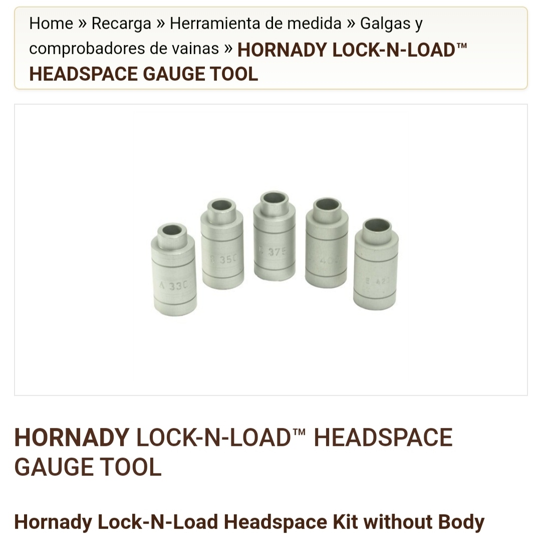 Hola, estoy empezando y tengo una duda con el adaptador que usa Bassam en su segundo vídeo de preparación de las vainas para iniciarse en la recarga, para medir el headspace que creo que el adaptador que usa con el pie de rey es sinclair, he visto el hornady LNL comparador de balas pensando que era lo mismo y me he dado cuenta que este mide la bala ya con la punta para calcular el OAL con lo cual supongo que no sirve para el headspace porque en el adaptador del 308w por ejemplo no entraría la vaina, ¿estoy en lo cierto, qué opciones tengo? Sólo Sinclair, qué adaptador precisaría para calcular el headspace de vaina 308w y 7,62 para el mosin? ¿Valdria él mismo?