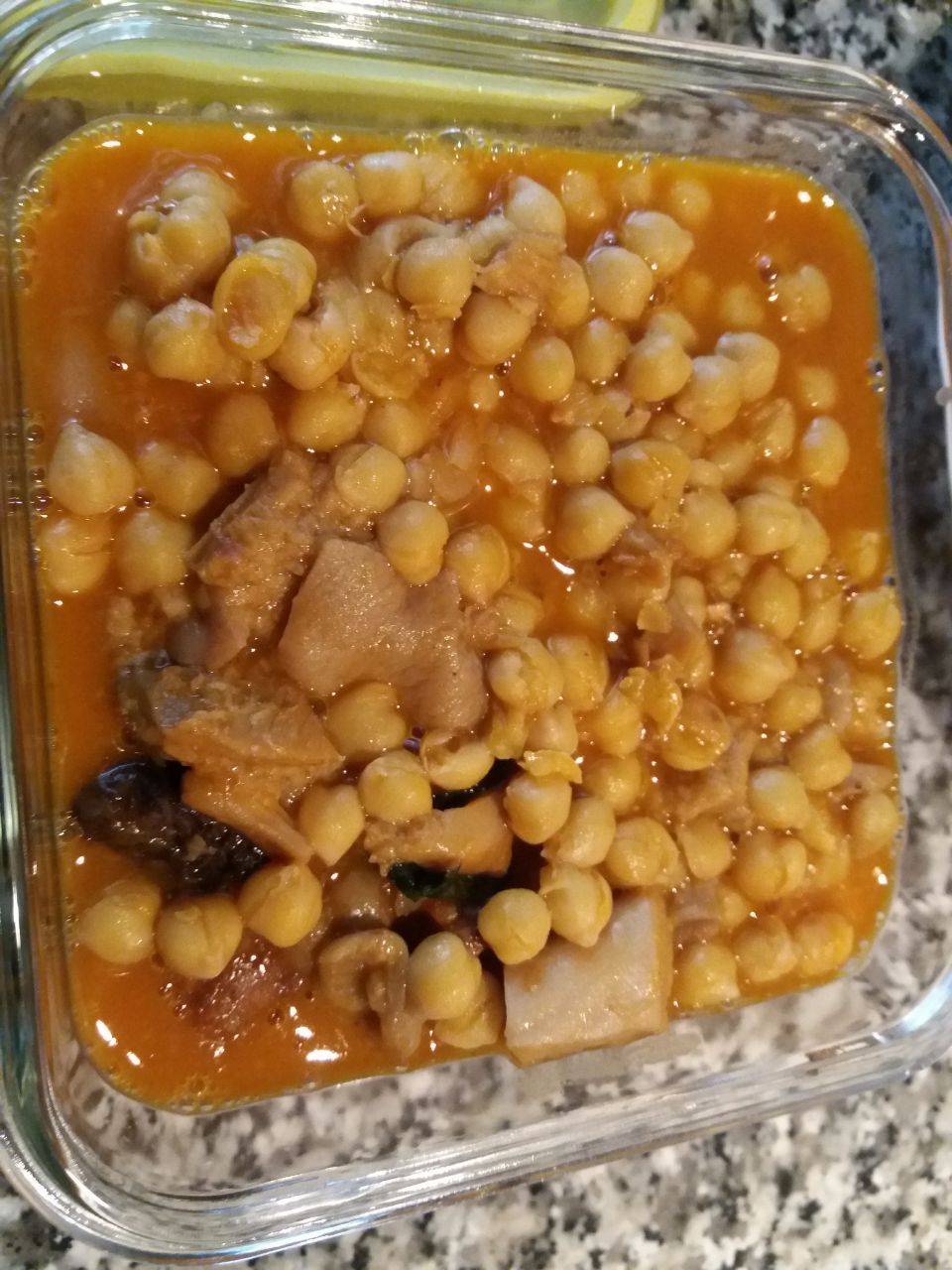 Pies de chon con garbanzos de pedrosillo, brassica oleracea y... algo más