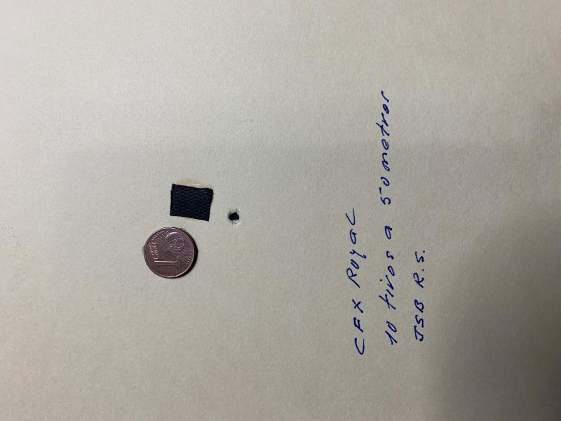 La diana que subo, es a 50 metros ( ayer no me convenció por el viento ) son solamente 10 impactos, el primero no se porqué me ha ido bajo, pero los otros 9 se pueden cubrir con una moneda de 1 céntimo.