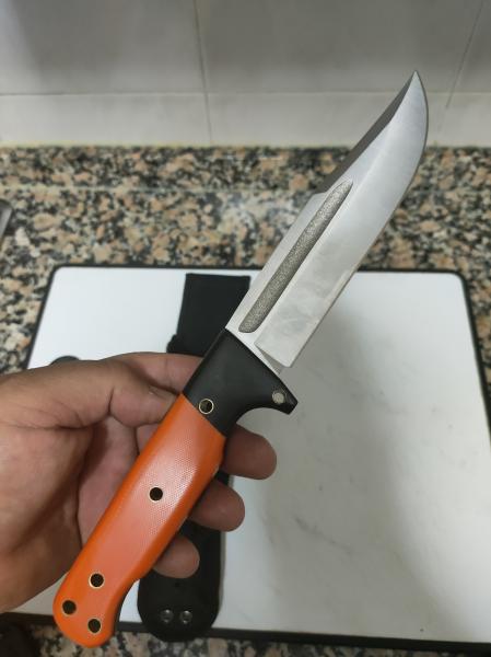 Modificado de mango g10 naranja y ébano cuchillo de 16 cm de filo acero mova 5 mm de grosor funda de nylon con bolsillo para navaja o kit su estado está perfecto sin usar antes 100 bajo a 80 euros oportunidad única no hay otro igual