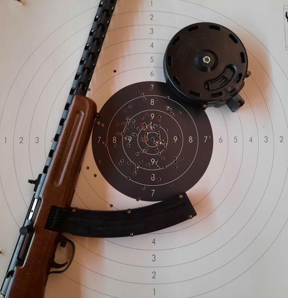 Esta diana, a 25 metros de pie sin apoyo, son 80 disparos en 30 segundos y con un cambio de cargador. Estoy satisfecho!