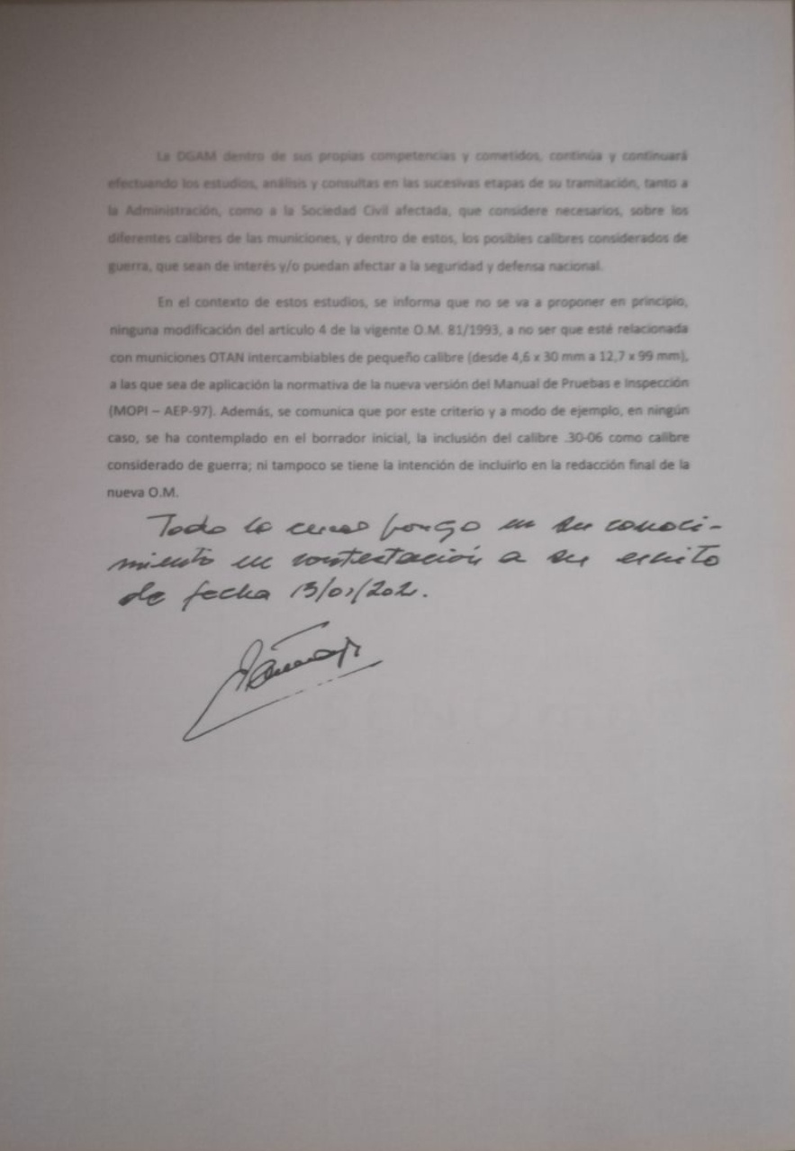 Solo se quedan que lo del 30-06 y ya con eso son felices, cuando se ha dicho que podrían estar calibres como el 30-06 o el 7,62x54r, cosa ni afirmada ni desmentida por el coronel en la reunión con la DGAM del 15-12-2020, solo que en la lista habia calibres que no eran, pero vamos se agarran al clavo ardiendo de que se mintió, que decían que prohibirán el 30-06.........ya algunos se han quedado tranquilos diciendo que se miente, y hasta hay llegan por su afán de darle al muñeco el pim pam pum diario....... pero no van más allá, vale el 30-06 no se contempla en el primer borrador y no se tiene intención de incluirlo, palabras de la DGAM.......y entonces cuales son los calibres en estudio para la modificación y actualización de los llamados calibres de guerra ??????........eso no se lo pregunta nadie, ya tienen el caramelo del 30-06 y al muñeco para darle los palos............algunos la nota de la RFEC la ven como el maná, pues recordarles que este asunto salió a primeros de diciembre de 2020, la reunión del muñeco con la DGAM fue el 15-12-2020 y hoy casi 2 meses después de las primeras informaciones sale la federación cual Cid Campeador con su nota........pues sí que han estado ocupados, ellos o la DGAM para no poder reunirse antes, pero vamos que viene a decir casi lo mismo que la nota de Artemisan con casi 15 días de retraso.......se ve que alguien quería dar un golpe de efecto en las elecciones a la RFEC.