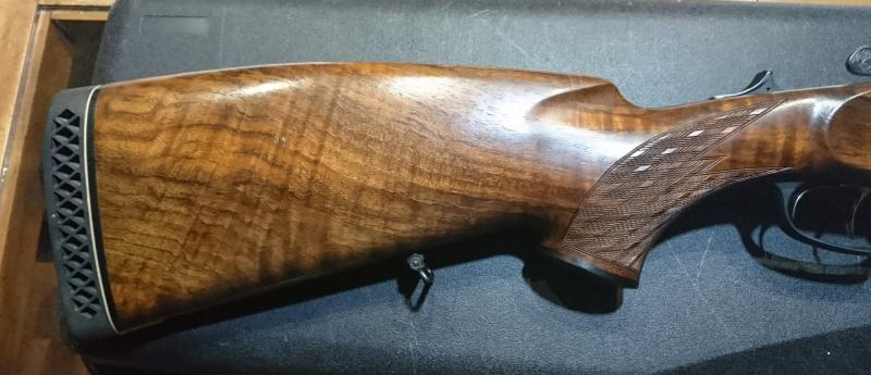 El rifle esta guardado ya tiempo en armero, no ha salido de caza esta impoluto, mirar maderas.... también el estado del pavón de los cañones... etc