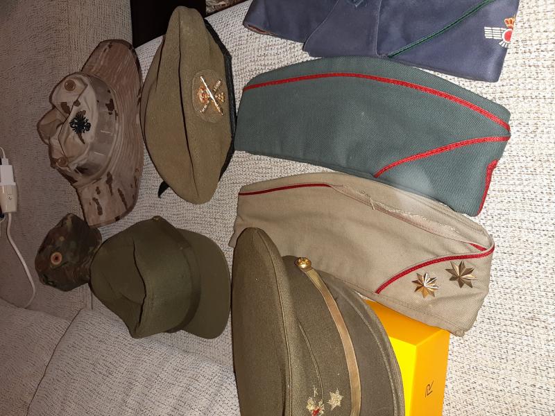 Lote de parches e insignias militares españolas,gorros y gorras (la gorra de plato Blanca es de la Policía de Moscú),cartucheras y tahali para Mauser,botones militares españoles.....etc. Se encuentra en Valladolid. Todo 100€ más 9€ de gastos de envio por correo certificado. Si se recoge en mano se regala un libro de militaria de la Division Azul. VENDIDO
