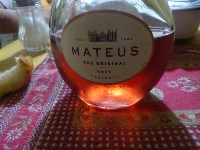 Acelgas hervidas con refrito de AOVEX y ajos de las Pedroñeras, salmonete de 650 gramos al horno con mejunje de AOVEX, Fino Coquinero y zumo de limon verde para naparlo en frío, diez (10) minutos de horno precalentado a 180 Cº y listo para jamar, de postre pera Williams y de bebercio Mateus Rosé.