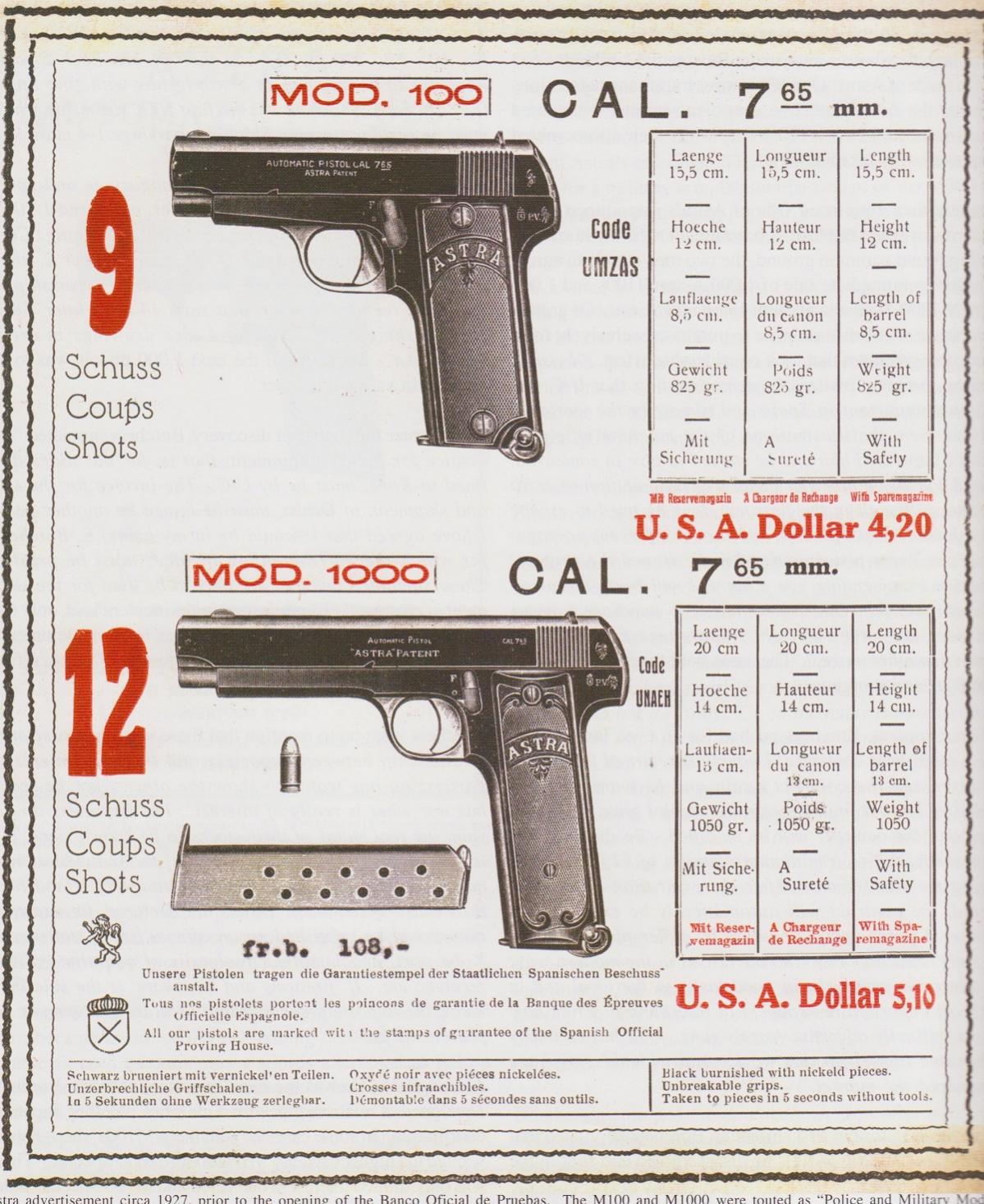 Como en la fotografía no se ve la pistola al completo también se barajó como posibilidad más remota que se tratase de una pistola Astra del Modelo 100 Special (Antaris en su libro la llama Astra 1000 Special) también de 12 disparos y con culata larga pero corredera de longitud estándar.